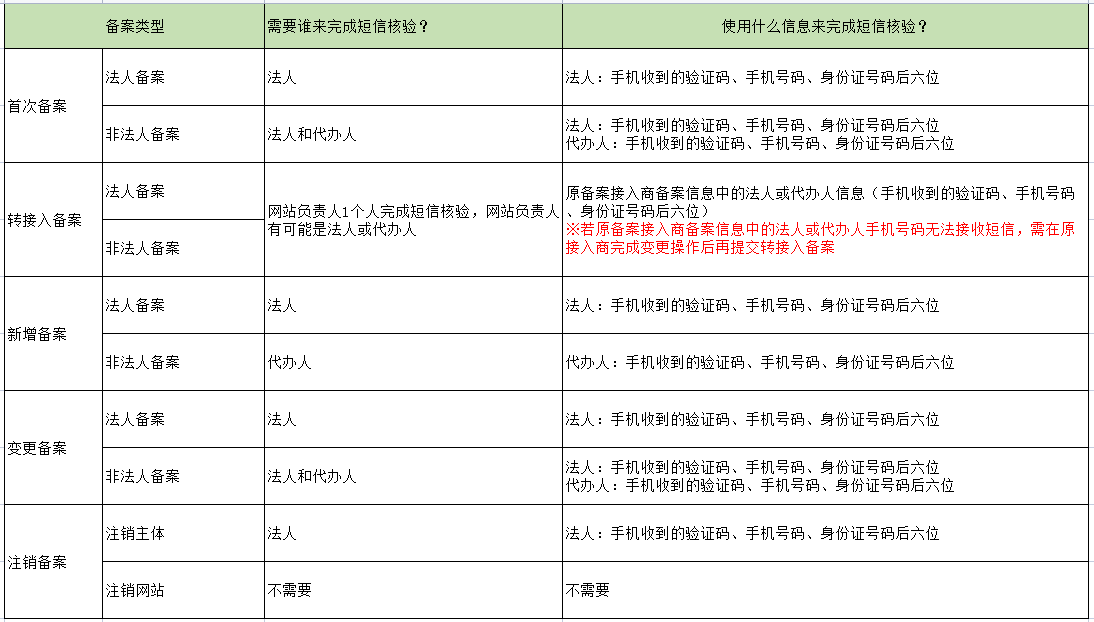需要短信核验的备案类型
