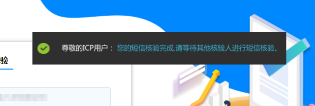 2.2 提交后,请留意页面提示短信核验结果,如系统提示【您的短信核验完成,请等待其他核验人进行短信核验,说明您的备案中还有其他需验证的手机号码,请联系其他负责人及时完成核验如超过24小时未核验,工信部系统将会备案进行退回。